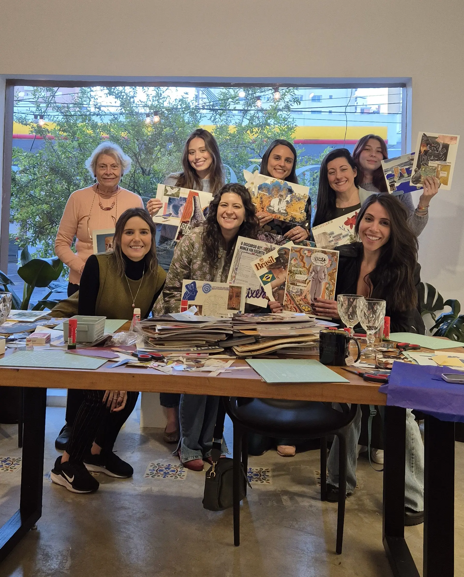 Os participantes aprendem sobre a técnica da colagem, materiais, diferentes estilos e fazem exercícios coletivos e individuais para desbloquear e aprofundar o autoconhecimento.